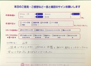 ~iPhoneXのバッテリー交換でお越しのオジサン様から頂いた評価~